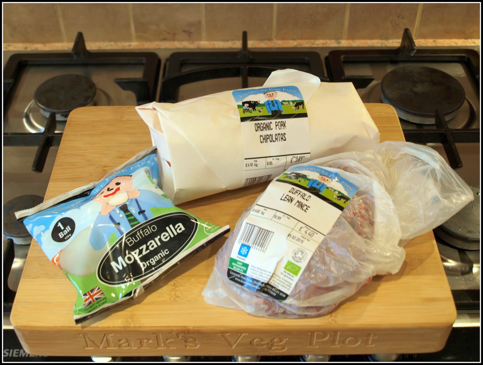We also bought some sausages made from the farm's outdoor-reared pork. They were not cheap, but we are expecting them to be really good. Proper sausages made with real meat, as opposed to mechanically-recovered mush, can be a real treat.