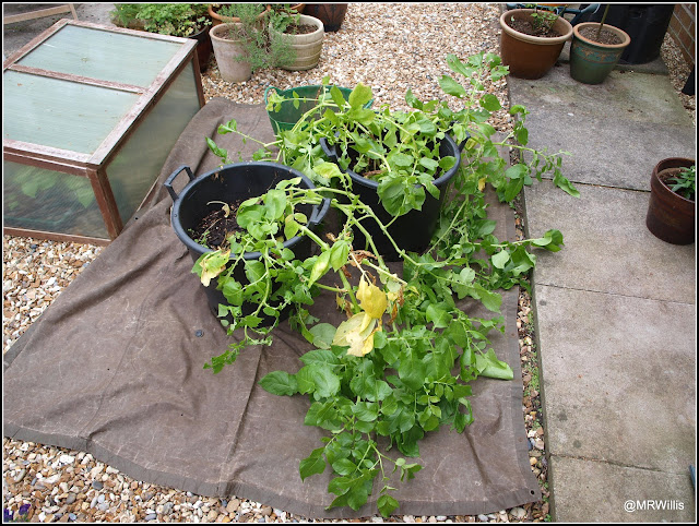 I've mentioned before that some of my potato plants at the Courtmoor plot have been afflicted with Blackleg disease. It was obvious to me that they were not going to produce much of a crop, and were just taking up valuable space that could be used for something else, so I made the decision to cut my losses and pull them up.